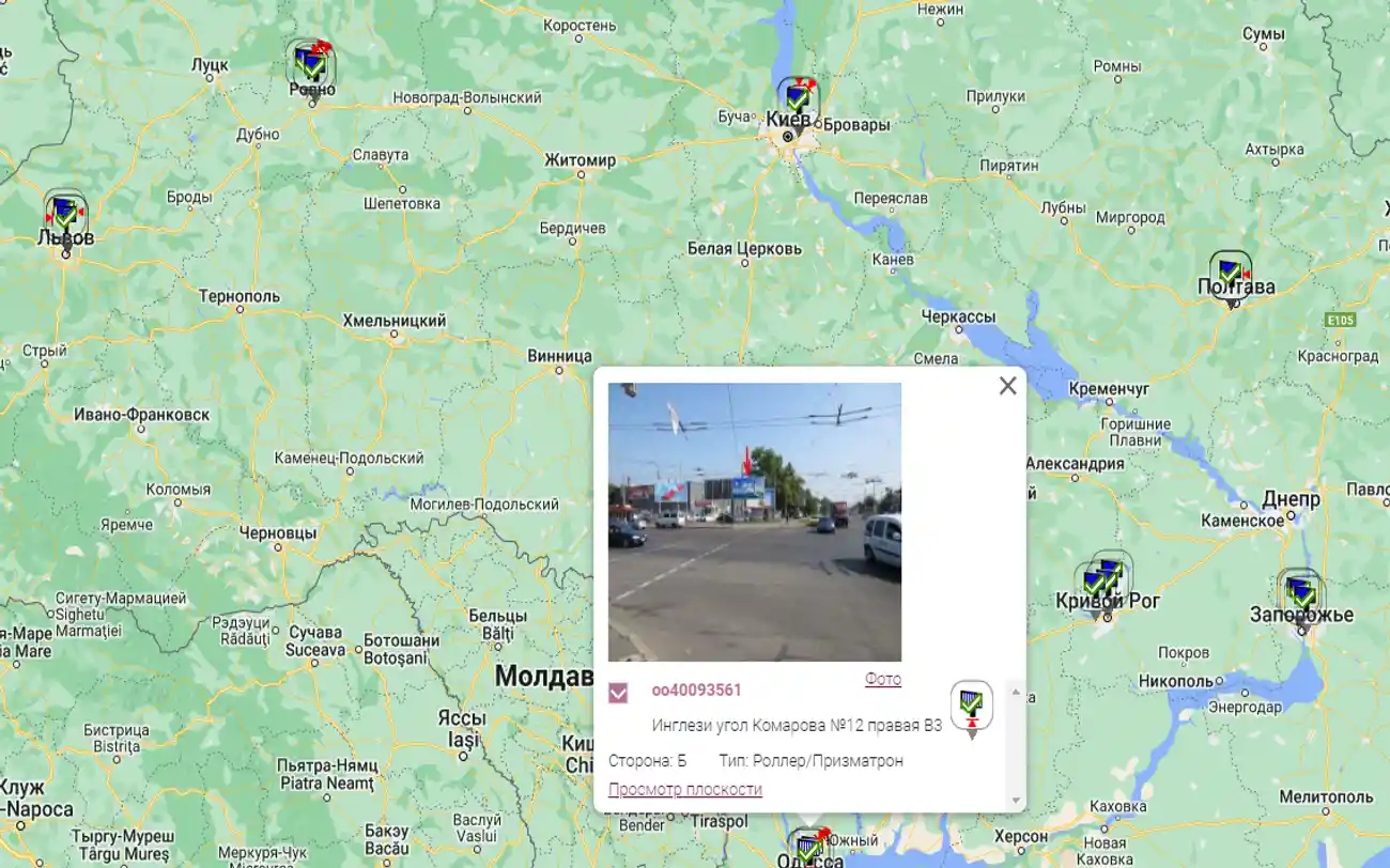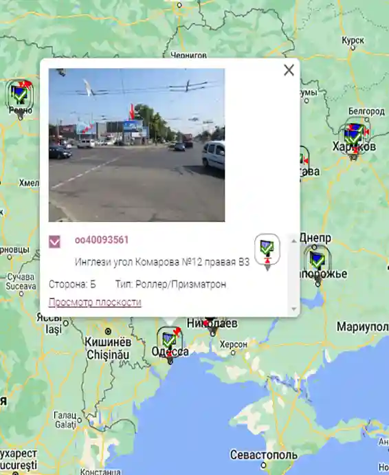 Огромная база плоскостей ОО позволяет комбинировать различные типы плоскостей в кампаниях, а также подбирать именно те плоскости, которые максимально точно подходят для целей кампании. Например: поиск билбордов в Киеве