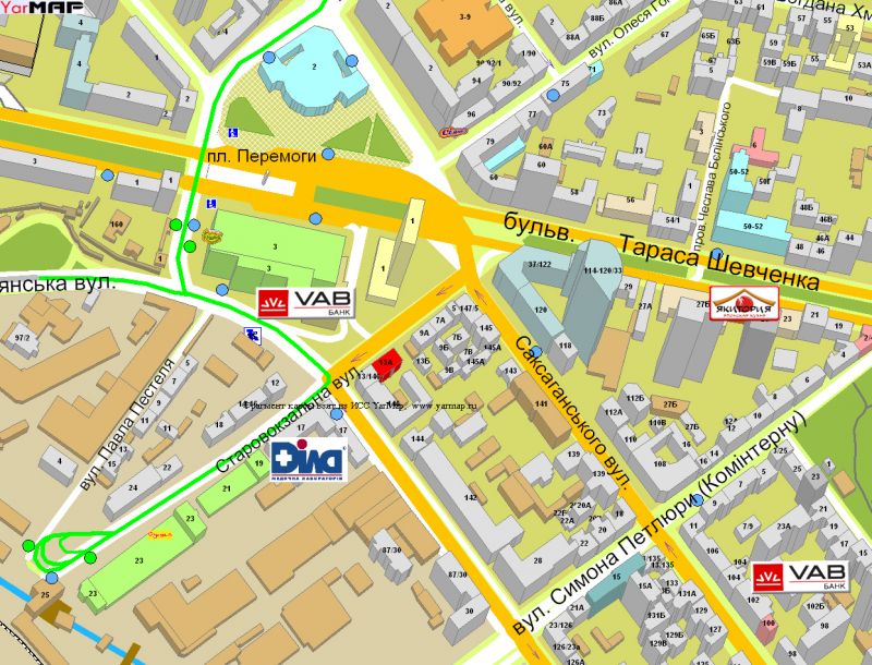 Кудряшова ул., 3, "Ультрамарин", клуб "Индиго", супермаркет "Велика Кишеня", в сторону ул. Урицкого