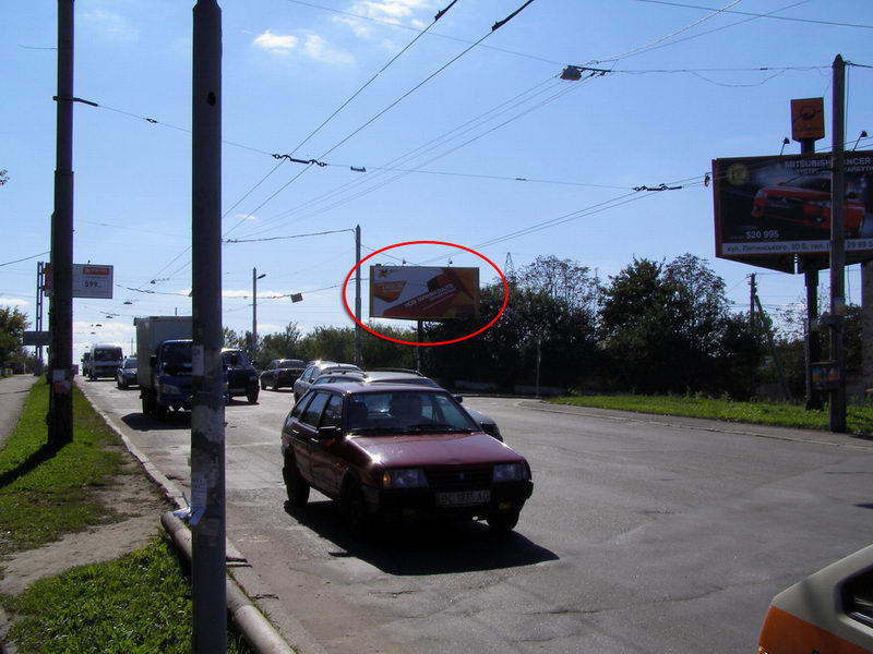 Реклама на мостах по Набережное шоссе, пешеходный мост через р. Днепр на о. Труханов, в направлении к мосту "Метро", Киев