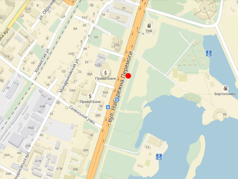 Украинки Л. бул., 24 / ул. Кутузова, ресторан "Марокана", "Спацио", в сторону ул. Щорса