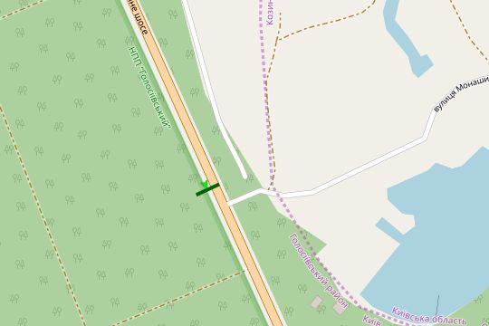 Столичне шосе, 100 метрів до повороту вул.Монашинська (оздоровчий комплекс "БАШТА") (у напрямку Обухова)