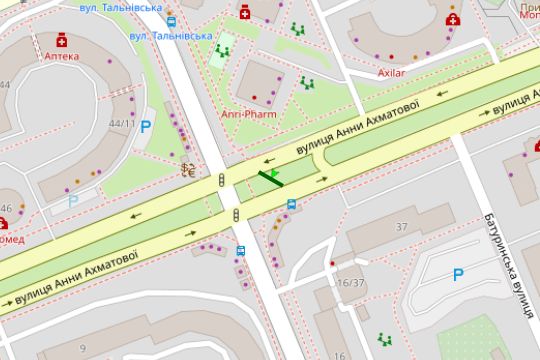 Анни Ахматової вул. - Урлівська вул. (у напрямку Дніпровської набережной)