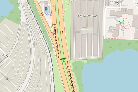 Богатирська вул., розподілювач - Лугова вул., розподілювач (у напрямку Вишгорода)