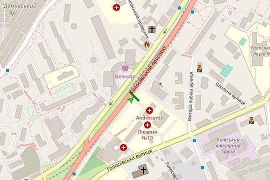 Голосіївський просп., 59: поліклініка №10 (у напрямку Московської пл. )