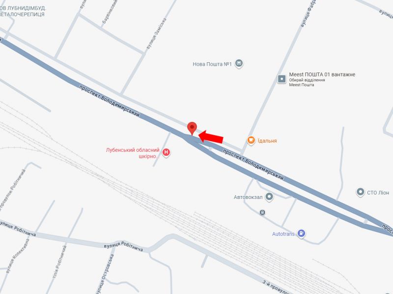 Валерія Лобановського (Краснозвездный) проспект, ліворуч навпроти буд 20 по вул.Пролетарська (після АЗС"WOG")