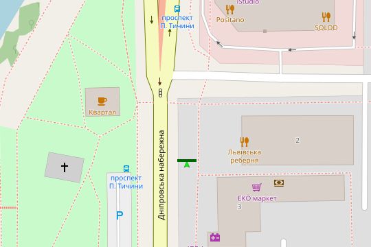 Дніпровська наб., №3 "ТРЦ Silver Breeze" - Павла Тичини просп. (направл. Мост Патона)