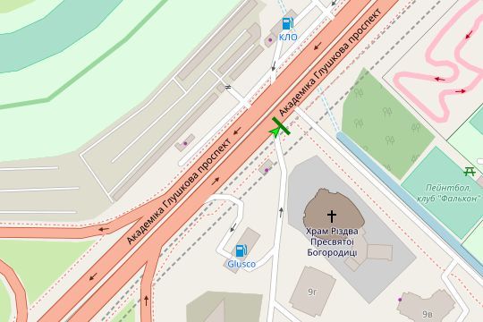 Академіка Глушкова просп., 10, навпроти (у напрямку Голосіївського просп.)