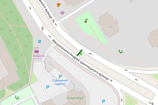 Митрополита Андрея Шептицького вул. (Луначарського вул.), 20 (у напрямку Русанівських садів)